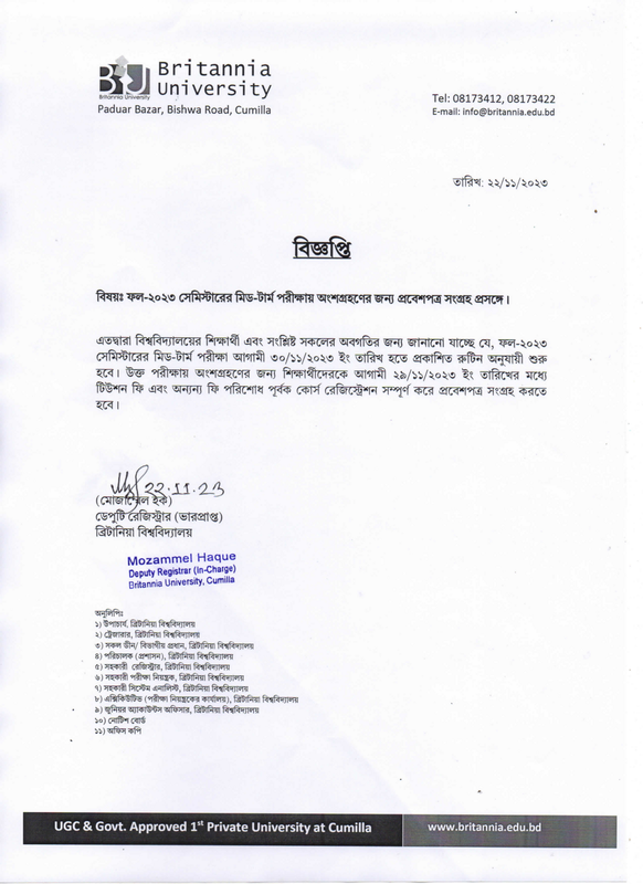 Subject: ফল-২০২৩ সেমিস্টারের মিড-টার্ম পরীক্ষায় অংশগ্রহণের জন্য প্রবেশপত্র সংগ্রহ প্রসঙ্গে।